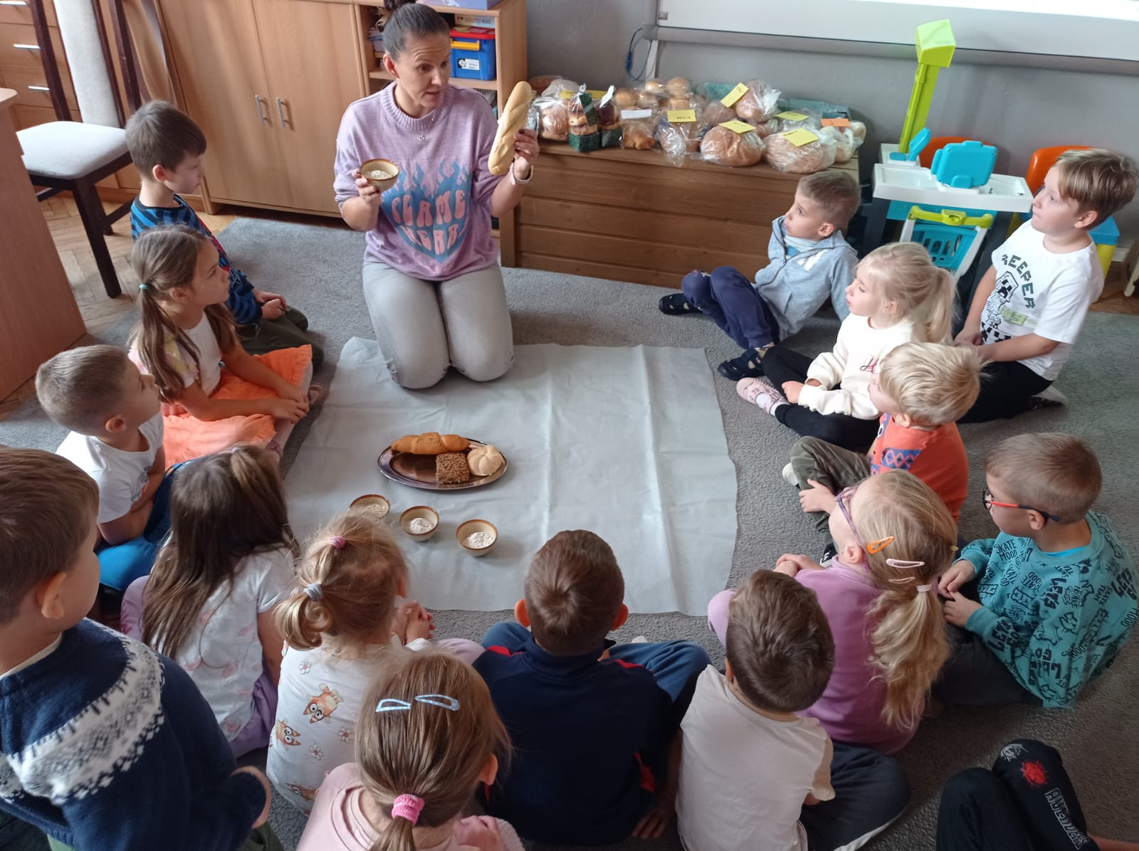 Nauczycielka prezentuje pieczywo