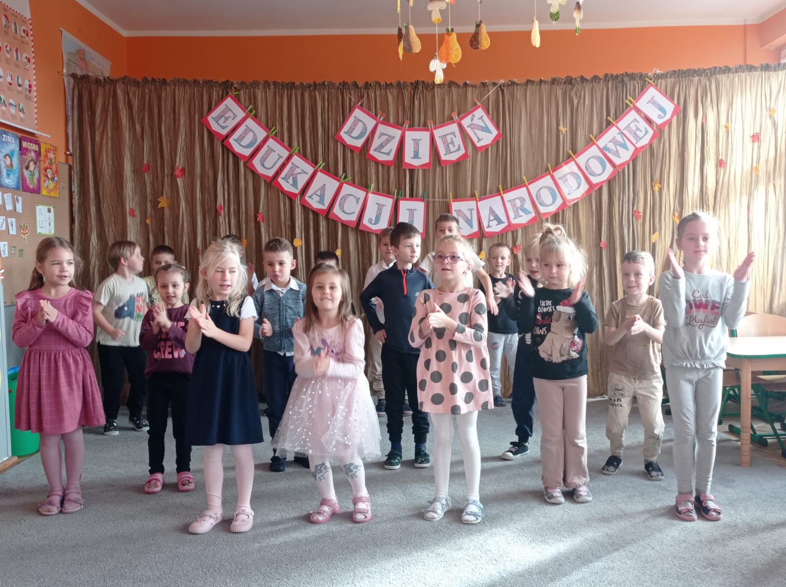 Dzieci ustawione w rozsypce prezentują taniec