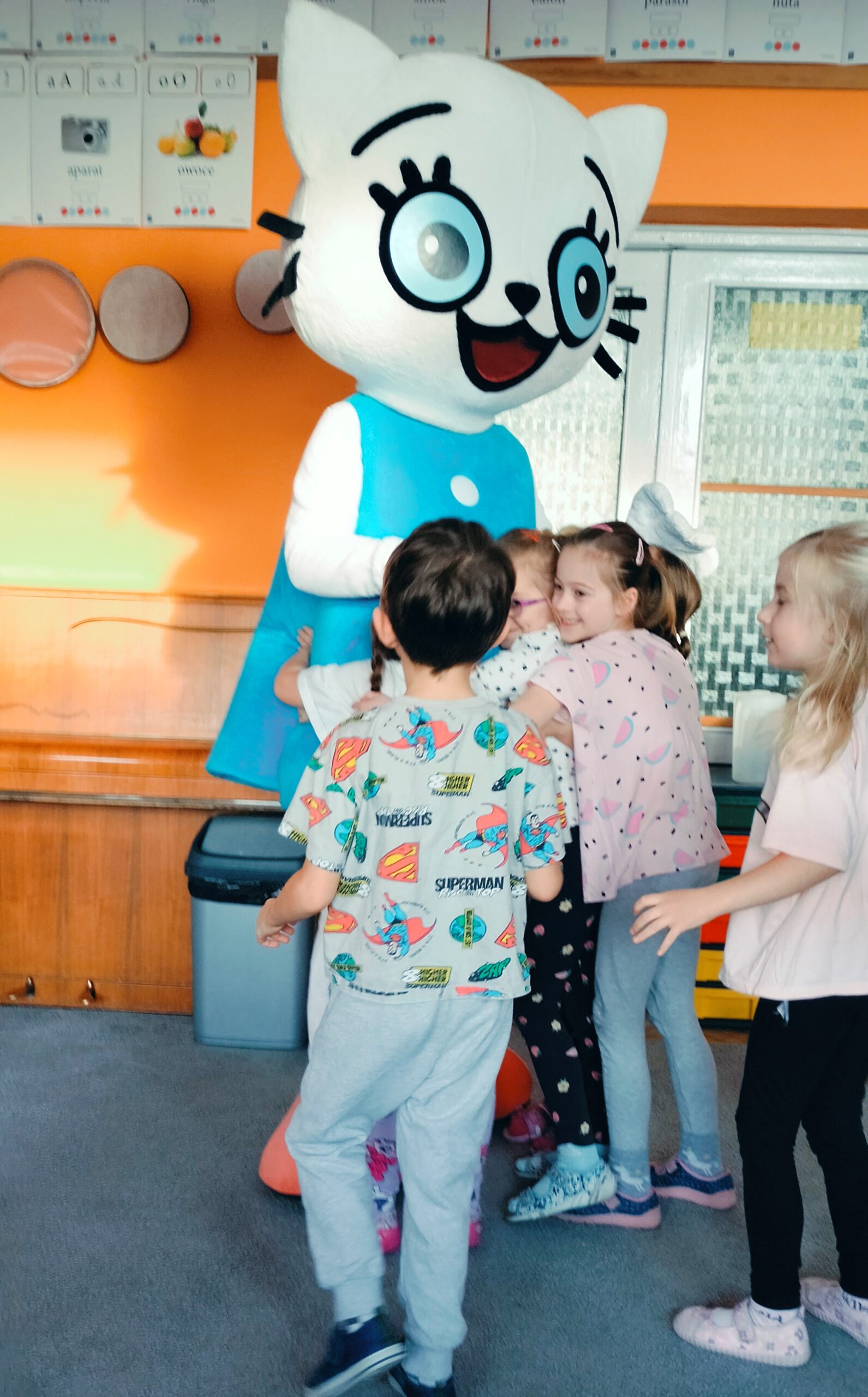 Dzieci tulą się do kici Koci